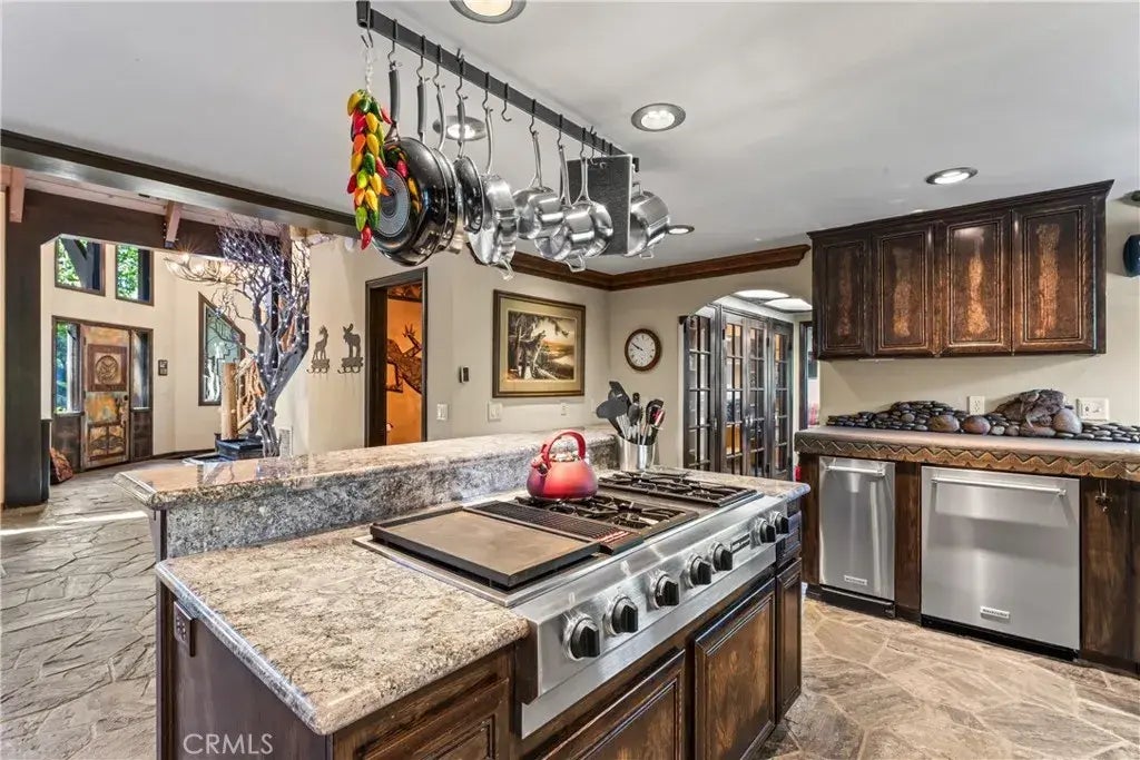 Welcome to one of the finest and most luxurious homes in Gated North Shore Estates! This upscale lakeside residence boasts a Colorado style mountain feel with 4 bedrooms, 5.5 bathrooms and 3 car garage. This custom detailed design offers near-level entry, stunning lake views and a sense of privacy in the cul-de-sac. The entry leads to the front door with its carved Eagles, which represents the homes unique history of restoring Eagles and other bird rehab. This property features a beautiful blend of luxury and true craftsman design with Pecan floors and custom stonework throughout. The main area is seamlessly connected to the open dining room and a beautifully designed and detailed kitchen with high-beamed ceilings into the family room with detailed stone fireplace! The kitchen is equipped with all essential appliances, butler pantry and sinks with custom river rock. On this floor you will also find another game room with a full bath. Upstairs, you will find two large en-suites, another spacious living room and the primary en-suite with a walk-in rock shower and lake views! Enjoy multiple patios, large, landscaped and fenced back yard. Extra side driveway plus RV/BOAT parking. With easy access and close proximity to the lake and trails, this home is a true blend of mountain mystique and luxury, with easy access and the entertainment possibilities making it an exceptional opportunity for anyone seeking an upscale lakeside property. Great for full-time or part time living!