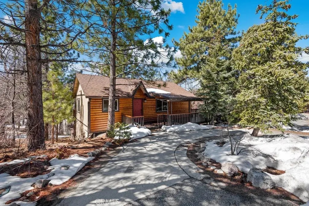 Charming Upper Moonridge Retreat with Stunning Views & Bonus Workshop! Nestled among the pines in Upper Moonridge, this beautifully maintained home offers a perfect blend of rustic charm and modern upgrades. Featuring a new roof (2021) and dual-pane Milgard windows, this home is designed for comfort year-round. Go inside to an open floor plan with vaulted beamed ceilings and a rock fireplace surround with a wood-burning insert and raised hearth, creating a cozy mountain ambiance. The spacious kitchen boasts granite countertops, wood cabinetry, and a breakfast bar, seamlessly flowing into the dining and living areas. A large slider opens to one of three decks, offering breathtaking views of the pines. The main level includes one bedroom and a full bathroom. Head downstairs to the game room/den, two spacious bedrooms, another bathroom, and a slider leading to a covered deck with a hot tub. A bonus 400 sq. ft. workshop/gym with natural gas heat provides additional space for hobbies or storage. The half-circle driveway offers ample parking. A successful short-term rental, this home is a fantastic investment or vacation retreat. Dont miss this exceptional mountain getaway!