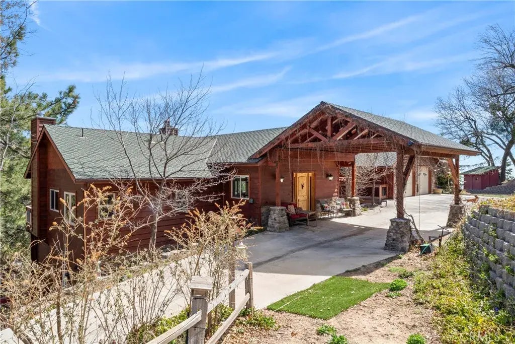 Elegant Mountain Haven. Discover an exquisite custom home nestled on a sprawling 1.3-acre lot in the picturesque town of Running Springs. Perched atop a secluded hillside and surrounded by pristine forest, this property boasts panoramic valley and mountain vistas, framed by expansive windows that flood the interior with natural light. Step inside from the large portico entryway to find a beautiful interior featuring rich hickory flooring and vaulted ceilings. The kitchen showcases granite countertops, pecan cabinetry, a generous pantry, new top of the line appliances and a welcoming breakfast bar. The primary suite is a true retreat, complete with a fireplace and an en-suite bathroom featuring a jacuzzi tub and a large shower with custom tile. The lower level offers versatile living spaces, including an additional family room with a fireplace, two bedrooms (one currently used as a craft space), a private office, and a dedicated hobby room. Two of the finished bonus rooms have a separate entrance and are not included in the listed square footage. Outdoor living is a dream with a series of low-maintenance Trex decks, ideal for al fresco dining, birdwatching, or stargazing around the inviting fire pit. The landscaped grounds boast fruit trees, including apple and apricot, flowering vines, and a serene hillside waterfall. Nature lovers will appreciate the regular visits from deer, gray squirrels, foxes, raccoons, and even the occasional black bear. Colorful mountain birds flock to the feeders daily. The driveway is lined with Quaking Aspens brought down from the High Sierras, a