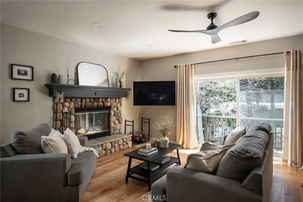 ***AVAILABLE FOR BACKUP OFFERS*** Rare opportunity to own in the exclusive, gated community of Village Cove. Enjoy lakeside living just steps from the water, the ALA trail, and only a short walk to the village. As an added bonus, the owners have secured a dock rental for the year on the multi-slip dock, giving you convenient access to the lake. This home offers convenience and luxury at every turn, starting with an oversized 2 car garage with direct street level entry. Step inside to find an ensuite bedroom for added convenience. The main level features an open concept layout that seamlessly connects the kitchen, dining, and living areas, where a wood burning fireplace with a gas starter adds warmth and charm for cozy mornings and evenings. The primary suite on this level boasts its own private balcony, a perfect spot to unwind. Outdoor living is just as impressive. Relax on the spacious deck or head out back to the patio where you can barbecue and enjoy the outdoor fire pit. Village Cove offers exclusive community amenities including a private lakeside lawn, picnic area, BBQ facilities, and a beach, along with a level walking path that leads west to the village and east to the marina. The community also features park like grounds with panoramic views, a seasonal stream, and a serene forest backdrop. This home is designed for relaxed, modern living, ideal for entertaining guests or enjoying quiet nights in. Dont miss your chance to embrace the lakeside lifestyle at Village Cove!