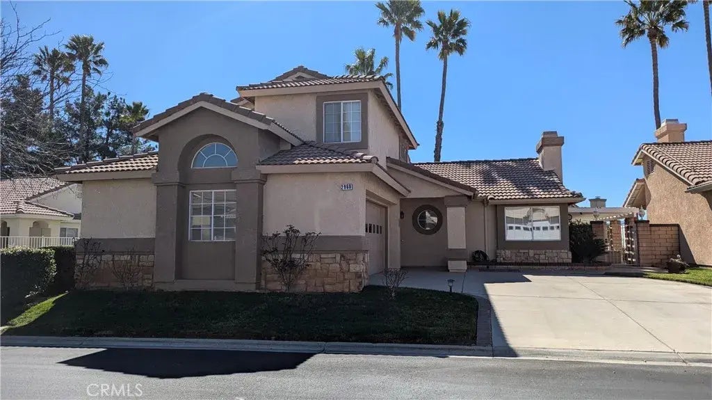 Great New Price!!! Such a Nice Home for this LOW Price! Nestled in the desirable senior 55+ community of Serrano Del Vista, this beautiful 2 bedroom, 2.5 bath home offers a comfortable and well-designed layout. Unique floorplan offers complete single floor living to include a generous living room and cozy fireplace, an open kitchen with updated granite countertops, matching double sink with a pull-down faucet, ample storage cabinets, a pantry and an included refrigerator. The spacious primary suite is also located downstairs and has a sliding door to a full length semi-private patio. Primary bath has an over-sized vanity with double sinks, a soothing soaking tub, a separate easy-step shower and a huge mirrored walk-in closet. A convenient half bath is also downstairs. Upstairs, a second bedroom and a versatile loft/living room with a Jack and Jill bath provide an ideal space for guests or possibly a caregiver. The 2 car garage offers floor to ceiling storage cabinets and a laundry area which includes the washer and dryer. The highly desired full size driveway will easily hold multiple vehicles. The home's exterior has been freshly painted in soothing neutral colors. Enjoy the fantastic outdoor living space with a large wraparound patio perfect for entertaining or quiet relaxation. Beautiful walking paths wind through the community, leading to the nearby pool and clubhouse where an active social calendar awaits. With a fiscally sound HOA and a low $160 monthly fee, this home offers both value and vibrant living! Located a short 6 miles from Cabazon Outlet mall & the Morongo