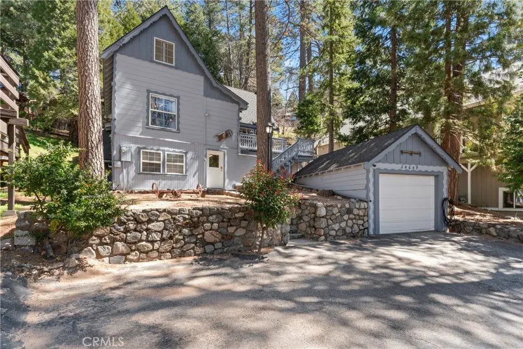Welcome to Blue Heron Lodge, offering lake living at its finest! Walk right across the street to enjoy all Lake Gregory has to offer. This immaculately kept 3 bedroom 2 bath home with huge workshop (not included in square footage) PLUS a roomy one-car garage, showcases a beautiful interior along with all the advantages of multiple entertaining spaces outdoors. On the main level you will find one bedroom plus an full bathroom, a nicely appointed kitchen open to the family room with a pool table and outdoor access to the patio. The living room off the entry showcases soaring wood beamed ceilings, wood walls, and a wall of glass courtesy of the newer french doors and slider. The converted gas fireplace is a cozy spot for those cool winter evenings. Upstairs is a double-size bedroom with expansive storage, amazing wood ceilings, and an open closet. Dual pane windows can be found throughout. Exit the slider to the handy and private composite deck, gated for containment of children and pets. Hang a hammock in the nook, or install a kitchen prep area under the wood beam arbor, or dinner by candlelight in the ample patio space. Downstairs from the main floor is a studio apartment, 1 br 1 bath with kitchen + dining area and house access (or not) as is your desire. This unit was previously rented separately with its own entry through the workshop. While speaking of the workshop (not included in the square footage) this space is great for just that OR as a hang out/game room for the unit. SO MANY POSSIBILITIES! Don't forget the one car garage with direct access to the house through th