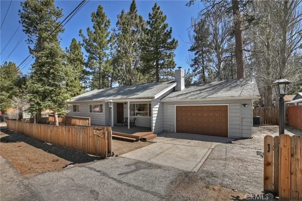 Single level 3-bedroom, 2-bath home with a 2-car attached garage in Big Bear City. Offers 1,260 sq. ft. of living space on a 5,000 sq. ft. fenced corner lot with deck to yard with apple and plum trees. The open living area features vaulted T&G ceilings and a beautiful stone accent wall with a wood insert fireplace, creating a cozy atmosphere. Southern exposure ensures quick snow melt and plenty of sunlight year-round. The kitchen has been recently updated with new quartz countertops, stove top, and hood. Home has central forced air heat and air conditioning. Also features a shed for extra storage and rain gutters. Close to restaurants, grocery, post office and bus stop.