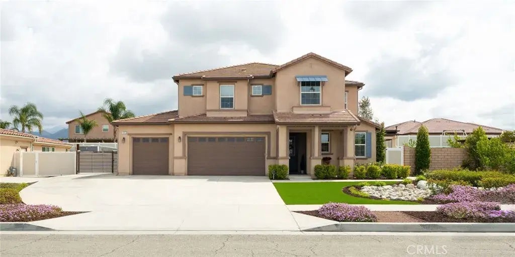 Stunning Multi-Generational Home with Breathtaking Views in Redlands. Model Perfect! Welcome to this exceptional multi-generational home in the prestigious North Ranch community an enclave of energy-efficient, modern homes nestled against the scenic San Bernardino Mountains. This expansive 4,100+ sq ft residence sits on a generous 14,181 sq ft lot, surrounded by the sweet aroma of orange groves and panoramic mountain views. The home features a private, self-contained suite with its own entrance, kitchen, living area, bedroom, bathroom, and a large covered patioperfect for in-laws, guests, or rental potential. The main home offers luxurious and functional living, beginning with a generous entry leading to two separate living areas one in the main home with a large great room with dining area and stunning kitchen and a downstairs junior primary suite. The gourmet kitchen boasts both quartz and granite countertops, combining beauty and durability in a space ideal for cooking and gathering. Gorgeous white cabinets and SS appliances. The suite is complete with a spacious bath and walk-in closet. You'll also find a half bath off the entry, gorgeous tile flooring throughout the main level, and custom sunlit paint colors that create a warm, elegant ambiance. The second is a multi generation suite with its own private patio. Upstairs, with new custom carpeting throughout is a spacious loft & offers the perfect space for entertaining, relaxing, or creating a media haven. The expansive main primary suite is a true retreat, featuring a private walk-out balcony with stellar views of the