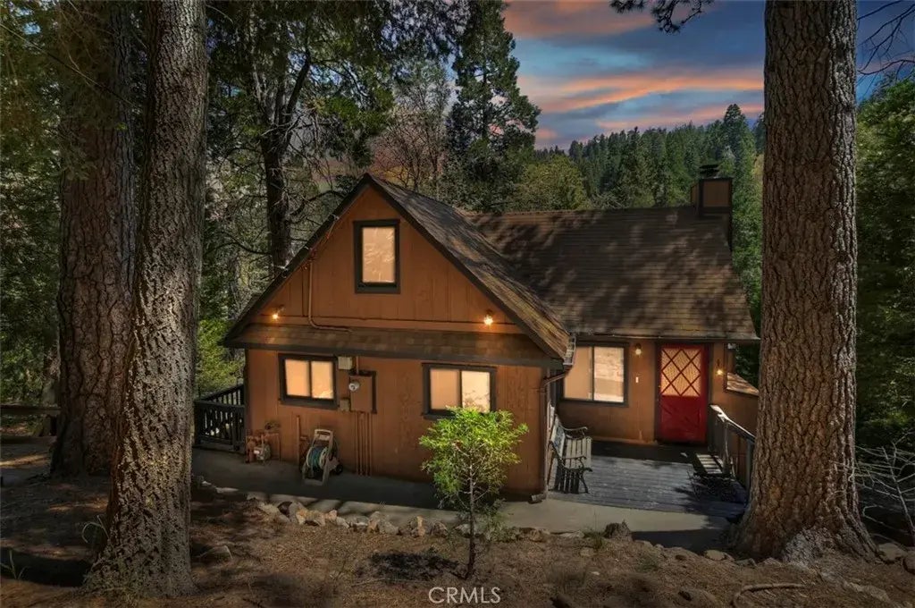 Huge Price Improvement! Schedule your showing soon. Vintage Cabin in the Woods. This is the one you have been looking for! Enjoy the privacy and seclusion of this vintage charmer situated on a 26,500 sf lot. Fantastic location close to Lake Gregory in Crestline or Lake Arrowhead. Hiking trail to Strawberry Peak is right off your back yard. Easy parking area for multiple vehicles off of Hwy 189 with stairs and pathway down to the main cabin. Enter into the main level and the cozy living room with brick fireplace, primary bedroom and bath, galley kitchen and dining area as well as a rear deck to enjoy the outdoors and sound of seasonal stream. Upstairs is a 2 room loft with 4 twin beds. Downstairs you will find a family room, bedroom, secondary bathroom, laundry area and access out to lower patio. Take the side stairs down to separate garage which has been converted to game room with wood burning stove for heat. Secondary access to rear of property via dirt access road off Hwy 189. Property is being offered furnished with exception of some personal items and artwork which will be detailed on an exclusion list. The two wall heaters are newer, having been replaced in the last couple of years.