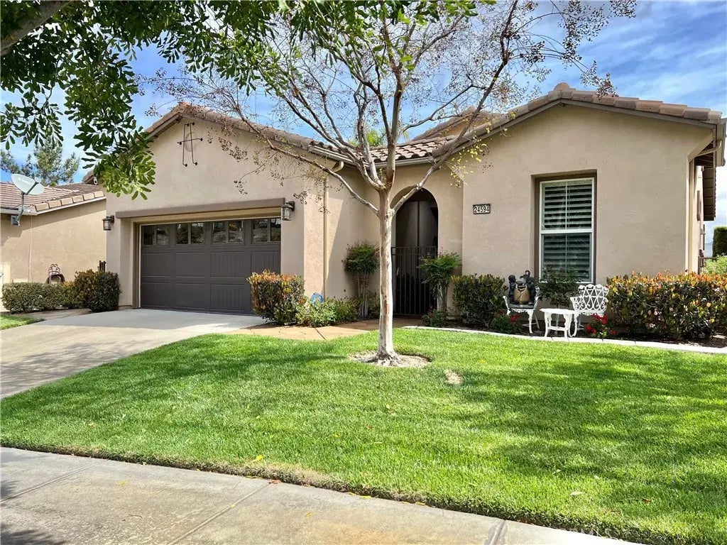 Wow, so many upgrades, plus a delightful day/night Panoramic View of the Temescal Valley and Eastern Mountains! This 1552sf Inaja Model is in Trilogy, SoCals premier 55+ Active Senior Community, known for its many Cruise Ship-Like Amenities. These include the 14,000sf Trilogy Lodge for numerous Club Events & Activities, Card/Crafts/Billiard Rooms, and On-site Management offices. Trilogys Sports Club has Indoor/Outdoor Pools plus Hot Tub, a well-equipped Gym, and an Indoor A/C Walking Track. Outdoor sports activities include Tennis/Pickle/Bocce Ball courts, plus the public Glen Ivy Golf Course that nicely meanders throughout the beautiful Trilogy Community. Enjoy all this while living in your Inajas near-maintenance-free backyard with artificial turf-grass and an Aluma-Wood Patio Cover. The HOA maintains your front yard and visitors will marvel at the unique, hand-carved & stained concrete walkways at the homes entry, side yard and rear patio deck; all upgraded by current owners. They also acrylic-painted the Garage Floor, installed 2 huge storage wall-cabinets and upgraded the Garage Door as well. Inside the home, Plantation Shutters help control lighting and atmosphere, along with ceiling fan/lights and a cozy Gas Fireplace. A recently installed Whole House Fan helps regulate interior climate and saves on utilities too. Flooring is mostly an easy-clean tile and wood combination, with granite counter tops in a well-lit Kitchen that includes a nice Pantry and several pull-out drawers. The Plantation-shuttered Primary Bedroom has a double-sink/mirrored Vanity, a Step-In Showe