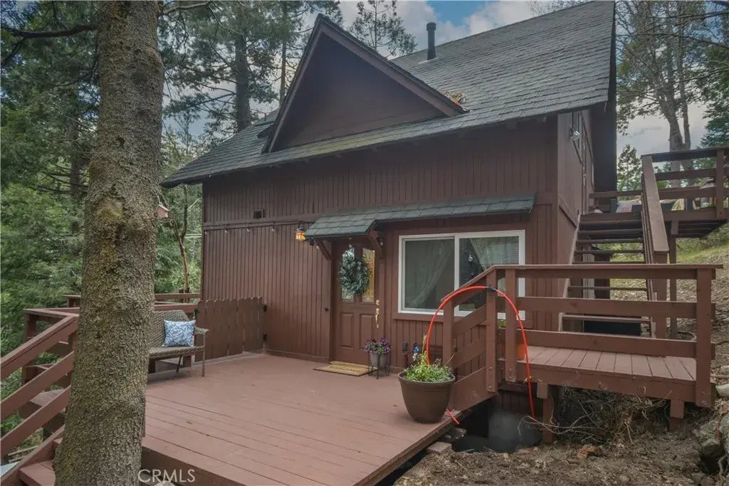 Escape to the mountains and create lasting memories in this charming Twin Peaks home. Perfect for those seeking a peaceful retreat or an investment property, this home offers a private and serene setting, tucked away from the street and just steps from a seasonal stream. The main level features a spacious, open floor plan, including a cozy living room, kitchen, dining area, and a bath. Step outside to the expansive wrap-around deck, perfect for enjoying the natural surroundings. Upstairs, you'll find the primary bedroom, a second bedroom, an office (or potential fourth bedroom), a full bath, and a second deck to unwind and take in the views.. The lower level includes a third bedroom, another bath, and a convenient laundry area. With a separate entrance, this lower level offers flexibility and privacy for guests or rental potential. Twin Peaks is known for its hiking trails, outdoor activities, nearby Lake Gregory & Lake Arrowhead Village with their shops and restaurants. Experience the joys of mountain living while being just a short distance to hwy 18...Dont miss your chance to own this mountain retreat! Furnishings are negotiable, and the home can be sold "turn-key" for a seamless move-in experience. Embrace the tranquility of mountain living today!