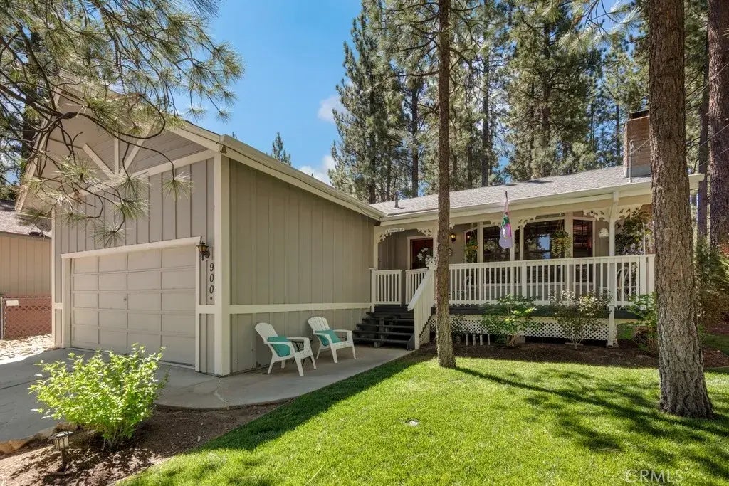 Offered fully furnished (with a few excluded personal items), this immaculate Big Bear retreat blends mountain charm with modern comfort. Featuring wood-beamed ceilings, pine accents, and rustic multi-toned vinyl plank flooring throughout. This home offers cozy style, easy maintenance and energy efficiency. The inviting living room includes a well-maintained wood-burning fireplace insert with fan and raised brick hearthperfect for chilly evenings. An open kitchen and dining area boasts stainless steel appliances, and both bedrooms are well-sized, with the primary featuring an adjustable bed. Go out to the spacious, level backyard with a back deck, low-maintenance turf, brick patio, and BBQideal for relaxing or entertaining under the pines. Located near the lake, ski resorts, shops, restaurants, and the National Forest, this turnkey homewith short-term rental potentialis an ideal full-time residence, weekend escape, or investment opportunity.