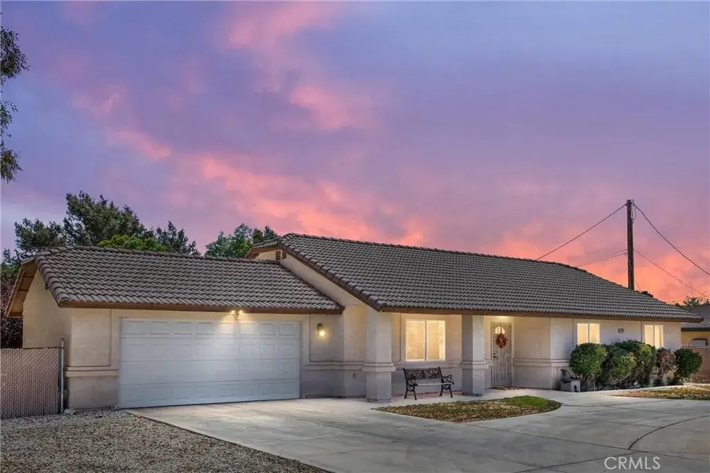 Nestled in the charming desert community of Apple Valley, this delightful single-story residence offers a spacious layout featuring three bedrooms and two full bathrooms. The home boasts vaulted ceilings and elegant Corian countertops with a breakfast bar, perfect for casual dining. Enjoy cozy evenings by the inviting fireplace in the welcoming family room. For dining, choose between a formal dining room and a more informal dining space. The property is set on an expansive lot exceeding 17,000 square feet, complete with a stunning patio cover and a vast backyard ideal for entertaining guests. Additionally, it includes a two-car garage with convenient RV parking on the side. Don't miss the opportunity to see this wonderful home it won't be available for long!