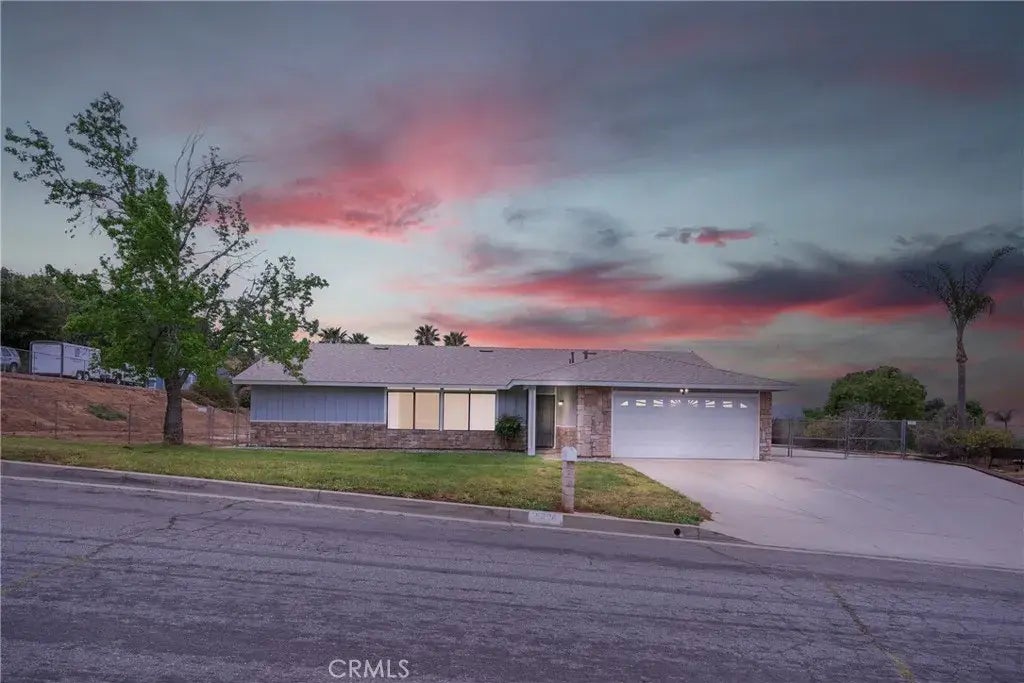 Privacy & Views! Located near the end of a quiet cul-de-sac in Jurupa Valley, this updated 4-bedroom home with an additional office offers comfort, space, and tons of potential. With 2,028 sq ft of living space on a nearly 3/4-acre lot (30,056 sq ft), its a rare opportunity to enjoy extra room both indoors and out. The home features fresh interior paint and new flooring throughout, along with newly painted kitchen cabinets that give the space a clean, refreshed look. The kitchen includes a breakfast bar and flows into the family room with a fireplacea great spot to unwind or gather with friends. A separate dining area and living room add flexibility for entertaining or everyday living. The living room bar includes a built-in refrigerator, perfect for hosting or relaxing. The primary bedroom is generously sized at 16'6" x 13'6" and features vaulted ceilings, a walk-in closet, an ensuite bathroom with a shower, and a private exterior door leading to the backyard, making it easy to step out and enjoy the open space. Additional upgrades include all new switches and plugs throughout, plus new hardware throughout the home, including updated doorknobs for a polished finish. Outside, theres RV parking on one side of the house, with room on the other side to add a gate for another RV, trailer, or extra vehicles. The spacious backyard features sunset views and has the space to build an ADU, with the possibility of adding a separate access gate and driveway for added privacy. The 8x12 shed stays with the property, adding convenience and storage. The roof is less than 3 years old, and