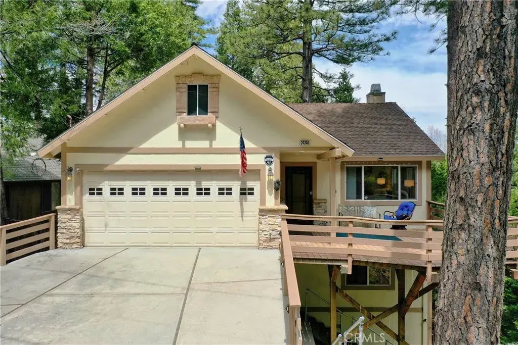 Situated a short walk from lovely Lake Gregory, this home has all you need and more! Beginning with the level entry, 2 car garage, stretching across the street-to-street lot, this i mountain living at its finest. The main level boasts a bedroom and bathroom, inviting living room with a two-way fireplace enjoyed from the dining room/kitchen as well. Composite decking makes the back deck an easily maintained space to relax and enjoy the songbirds, squirrels, and starry nights. Downstairs there is plenty of room for all your guests with an additional 3 bedrooms, 2 baths, and a "secret room" perfect for home-schooling, crafts, workshop, game/recreation room, almost anything you can imagine. A second deck allows outdoor enjoyment for the occupants of this level, and easy access to the backyard. From the back of the property, it is just a couple minutes to the lake, an enjoyable walk almost any time of year. Come experience mountain living at its finest. Just 90 minutes (or less) from most of LA, Orange, Riverside, San Bernardino, (and even areas of San Diego) counties. Restore your soul in the alluring atmosphere of the San Bernardino mountains!