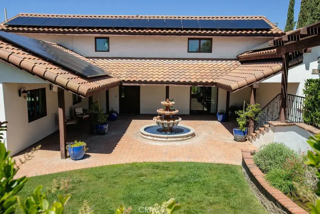 Stunning custom home with gorgeous VIEWS of Redlands! A private courtyard welcomes you in with a beautiful cascading fountain. Entry into the gorgeous hardwood floors. Large Chef's kitchen featuring beautiful Quartz countertops, wood cabinets, stainless steel appliances and Travertine floors. Dining area located off kitchen gazes over the sparkling pool; dine while enjoying the scenic VIEWS! Formal living room showcases a beautiful brick fireplace and beamed ceiling. Family room with sliding doors to backyard; perfect for entertaining. This home features not one but two primary suites. You decide if you prefer the primary suite that is located conveniently downstairs with double doors out to the pool/spa gazing into the beautiful VIEWS. This suite offers his and hers walk in closets, his and her sinks, walk in tile shower and fabulous copper tub. Or you may prefer the upstairs primary suite that includes a private balcony overlooking the VIEW of city lights. A 3rd additional bedroom with its own private bathroom and walk in closet also located upstairs. Head outside to this tranquil backyard and gaze into the cityscape and as you may suspect....scenic VIEWS. Enjoy the Sparkling pool and spa but head out a little past that and the possibilities are endless. Useable flat land is ready for your next project; whether it is an ADU, a large garage or perhaps a barn....this space is ready to be used! It is easily accessible from the side gate. Plenty of space here for RV parking, dune buggies, and other toys! 2 car attached garage, inside downstairs laundry room. Leased solar. Thi