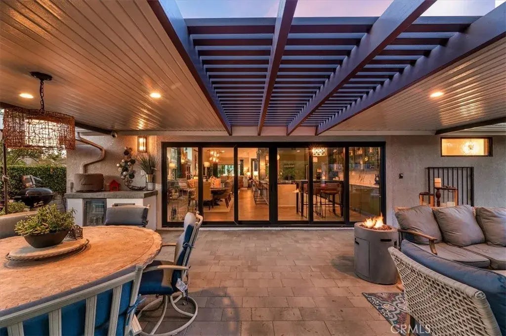 Welcome to the highly desired community of Fieldstone Arbor, located in the city of Fullerton. This single story home is located on a large corner, backed by a quaint community park/picnic area. This professionally decorated home with high-end finishes throughout has 4 bedrooms, 2 bath which have been completely remodeled to show off its modern design. Every bit of this home has been customized to fit even the pickiest of buyers. Walk up to the perfectly manicured front courtyard, where you are greeted by a sparkling fountain and an extended front porch with seating for that morning coffee. Step into this home and you'll find the 3/4" hardwood flooring and high ceilings. Just off the entrance you'll see the Office which features custom glass double doors with built-in storage and a wood accent wall. Make your way into the great room that has high ceilings, an open concept living, a fireplace, a large seating area and a huge dining area adjacent to the Chef designed kitchen. This home screams entertainment! The kitchen boasts a high end Italian Bertazonni 6 burner range with a griddle and 2 ovens, a stacked French door oven and microwave/convention oven combo. The walk-in Butler's pantry is hidden behind beautiful antique double doors. The eye-catching 12' waterfall quartzite island is great for baking and easily seats 6 for informal eating and gatherings. Some extras include custom ceiling height cabinetry, a custom built-in wine rack, cement tile flooring and a Coffee bar. Make your way down the hall to find 2 large guest rooms, an upgraded guest bath and the incredible Pr