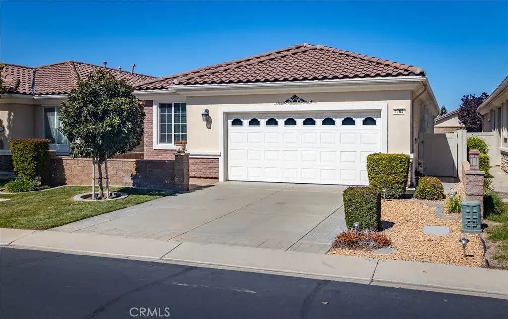 Welcome Home! This beautifully maintained residence showcases true pride of ownership, featuring numerous upgrades throughout. It's nestled in the highly desirable Solera Oak Valley Greens community. A Vibrant 55+ Community. The thoughtfully designed kitchen features custom cabinetry & pullouts, custom back splash and a pantry, flowing effortlessly into a the dining nook and an cozy living roomideal for both everyday living and entertaining. Step outside to your private backyard retreat, complete with an extended tongue & groove patio cover, summer sun & wind screens, and low-maintenance landscaping, artificial turf area. while the well-kept front and back yards enhance the home's curb appeal. Concrete walkways on both sides of the property ensure easy access, new concrete in the backyard and a rear block wall offers added privacy. The enclosed front courtyard, also bordered by a block wall, creates a welcoming outdoor space. "Relax by the backyard creek and enjoy the soothing sound of running water (please note: the water feature must be manually activated)." Inside, the home offers generously sized bedrooms and a versatile bonus room that can be used as an office, den, or hobby space. Additional highlights include a walk-in closet with glass mirrors, a well-appointed laundry room with extra built-in cabinetry, elegant crown molding in the living room & kitchen , and timeless plantation-style wooden shutters throughout. Ceiling fans in every room. The garage is equipped with and built-in cabinetry with over head storage providing practicality without compromising space. Ho