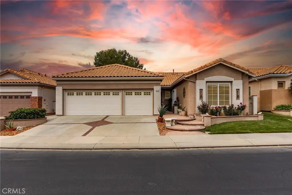 This rare Tuscan BEAUTY is a Wisteria Model home and is the largest single-story home with a 3-car garage. Sun Lakes is a 55+ County Club Community with many amenities including two 18-hole golf courses. This home sits on the 4th fairway of the Championship Golf Course with sightline to the green. Upon entering the home, you will be captivated by the views. GREEN , green, green out the new picture windows in the Livingroom also out the full Bay Window in the primary bedroom and the Kitchen-Great Room. Note the giant Pine tree and Maple trees. The Wisteria is a U-shaped structure with the entry situated in the middle through a beautiful courtyard. Glass door entry into the massive Livingroom and formal dining area. The kitchen-great room is 38 feet long. Located on the double arched wall is a large TV, fireplace and book case. Large seating area, kitchen table, island with granite countertops. Double ovens, double pantry doors with slide out shelving. A coffee/tea station, separate laundry room with a utility sink and cabinetry. The patio cover is 16 feet deep and an Alumawood pergola is over the primary bedroom sliding door. The primary bedroom has a transom over the door, Full Bay Window to patio, bathroom has walk-in shower, garden tub and walk-in closet. Down the hall is another doorway with matching transom offering privacy from the main home. There is an office or den with a French Door to the courtyard. A full bathroom and a second primary bedroom. Other amenities to mention are: NEW cornices, plantation shutters, hot water tank, epoxy garage floor, French doors, cour