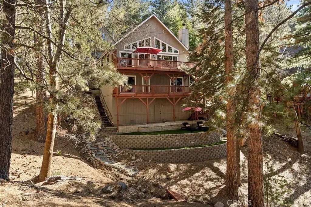 Experience Elevated Mountain Living on Nob Hill Circle. Stunning Turn Key mountain retreat where pride of ownership abounds. Sellers have lovingly and thoughtfully remodeled this home from top to bottom. They say the magic is in the details, and that is the case here where sleek meets rustic at every turn. First, Fall in love with the vaulted ceilings that frame the dreamy tree top view to the forest outside. Main level features the open concept kitchen, living room, bedroom, closet and bath with engineered hardwood floors throughout. Step onto the expansive deck with jacuzzi and unwind in the private jacuzzi beneath the stars. The lower level is a private sanctuary featuring a spacious primary suite with heated floors, a second bedroom, another full bath, custom closets and direct access to a second deck and backyard. Artificial turf, a workshop area, and curated lighting inside and out further elevate the property's thoughtful design. Offered furnished (less seller inventory list) this exquisite home is ready for immediate enjoyment perfect as a full time residence or luxurious weekend escape. Ideally located minutes from Skypark at Santas Village and Snow Vally Mountain Resort.