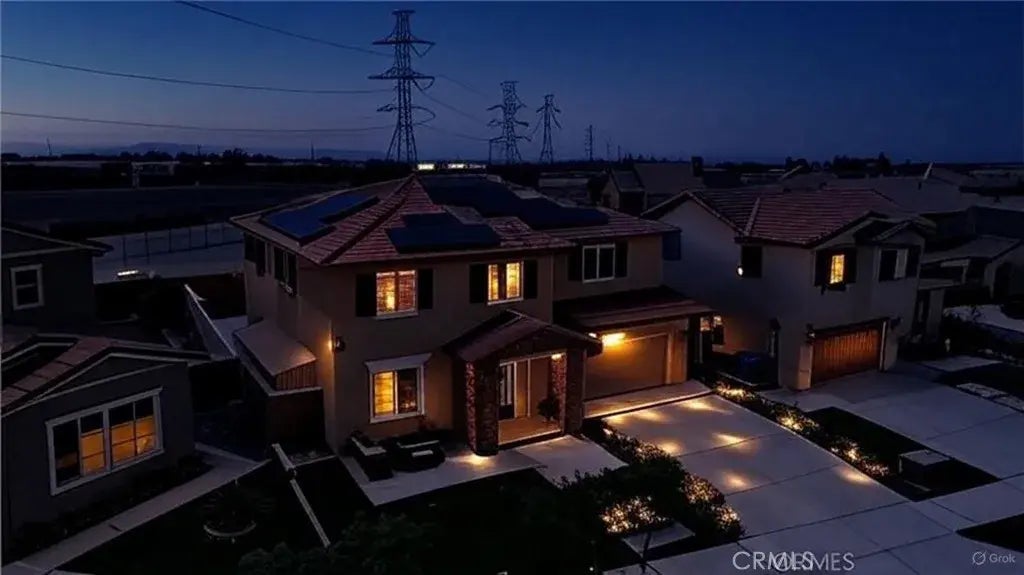 Luxurious Modern Living in a Gated Community Built in 2022 by D.R. Horton! Welcome to this stunning 5-bedroom, 3-bathroom two-story home offering 2,720 sq ft of beautifully designed living space. Built in 2022 by D.R. Horton, this spacious home sits on a generously sized lot in a secure gated community, combining luxury, functionality, and modern energy efficiency. Step inside to an impressive open-concept floorplan with soaring ceilings and abundant natural light. The chef-inspired kitchen is a true showstopperfeaturing crisp white cabinetry, gleaming quartz countertops, a large center island with built-in sink and dishwasher, and seamless access to the dining and family rooms, perfect for entertaining or family gatherings. Downstairs, youll find a convenient bedroom and full bathroom, ideal for guests or multi-generational living. Upstairs, retreat to the massive primary suite with a spa-like bathroom offering a separate soaking tub and glass-enclosed shower, dual high vanities, and a huge walk-in closet with custom built-ins. Outside, enjoy low-maintenance landscaping with artificial turf in the front, and a fully paved backyard with storage spaceideal for an above-ground pool, outdoor kitchen, or shaded patio. The spacious three-car tandem garage provides ample room for vehicles, tools, or recreational gear. This home is equipped with two leased solar systems, allowing for little to no electric billan incredible bonus for eco-conscious buyers. Located just minutes from shopping, dining, entertainment, and easy freeway access, this home truly offers the best of comfort,