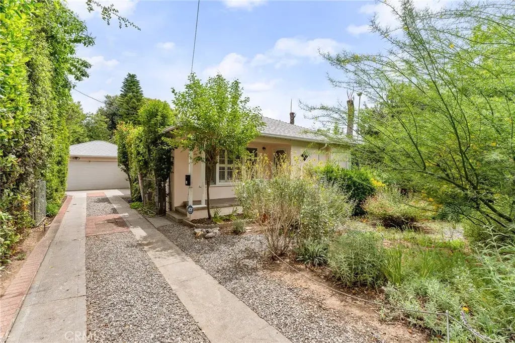ACCEPTING BACK UP OFFERS. WELCOME HOME to this hidden, Redlands gem! Nestled among a garden filled with California native plantings, this darling bungalow is set back from the road on a LARGE DEEP LOT. The property retains many vintage features creating a truly charming place to call home. It also offers many improvements including UPDATED ELECTRICAL, newer authentic looking flooring in the kitchen and mudroom, newer roof, gutters and more. Gorgeous hardwood floors, vintage tile work, and a nice front porch create your own little sanctuary. It is a perfect starter home or perhaps an investment property. Built in 1948, the layout showcases a sunny kitchen, spacious living area, 2 nice sized bedrooms, and 1 bath. The detached 2-CAR GARAGE HAS ADU POTENTIAL. The LARGE YARD is comprised of a delightful COVERED PATIO, a manageable lawn area, flower beds and a secret garden! THIS HOME ENJOYS SERENE AND UNEXPECTED PRIVACY. Located near the Museum of Redlands, historic downtown Redlands, ESRI, local medical centers, acclaimed schools and shopping. DONT DELAY! See this cutie today!