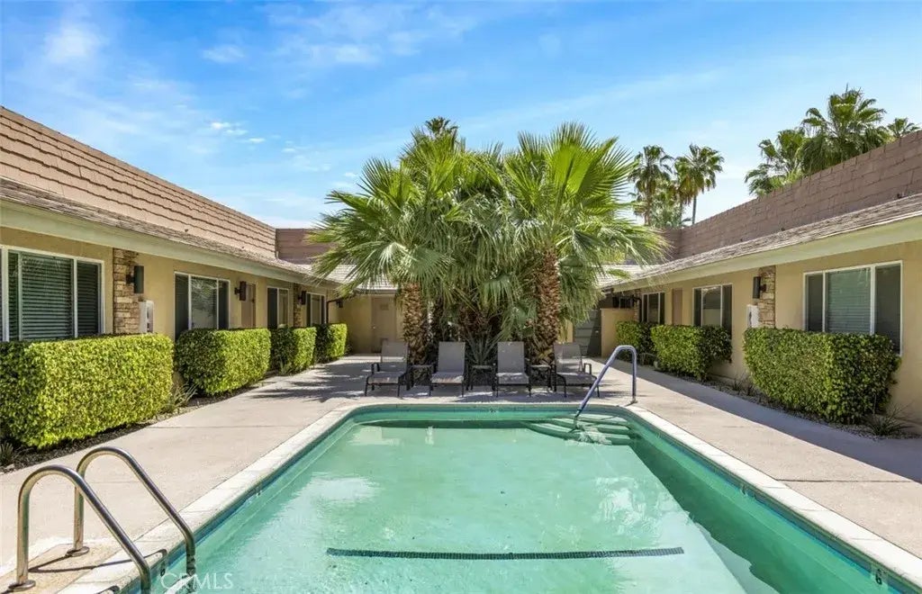 Nice 2-Bedroom Apt--Just Steps Away from the Pool in Beautiful Palm Springs! Entry to the unit is from the interior courtyard in Thornhill Villas, a Boutique, Gated apartment building originally built for Louise Lavelle of Louise's Pantry fame. It boasts 8 unique villa homes that were all remodeled in 2014 and 2015. Enjoy gorgeous mountain views while lounging around the lovely shared Pool. A great location within walking distance to major retail amenities (CVS, Ralph's and Starbucks)! This bright and airy apartment features an upgraded kitchen and two large bedrooms with a walk-in closet in the primary bedroom. The apartment includes an extra large Private Patio and Full-Size Washer and Dryer (inside). Kitchen features Granite Countertops, Stove/Oven (gas), Microwave, Refrigerator, Dishwasher, and Garbage Disposal. Tile Flooring and Carpet throughout, and Central AC/Heat. One Assigned Parking Space. A Flat Rate of $50 per month covers Water, Trash, and Sewer! Will Consider 1 Small Pet.