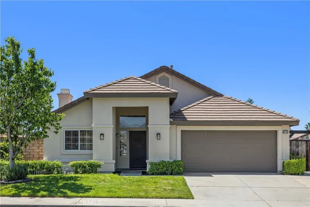 Single family home in Three Rings Ranch with RV / Boat parking potential and NO HOA! This home is located directly across the street from Three Rings Ranch Elementary School, and it is only about a 500ft walk to the Three Rings Ranch Community Park. Enjoy a beautiful view of the San Bernardino Mountains directly from the kitchen window. This home has three bedrooms with two full bathrooms, and it is sitting on over a 7,500 square foot lot (buyer to verify). While the backyard does need some TLC, there have been many upgrades. The HVAC system was recently replaced in 2022 (3 ton Seer 14 Goodman condensor, Goodman Furnace, and Goodman A-Coil). The whole house had the trim professionally painted and the stucco professionally fog coated in April of this year. The home includes all appliances currently in the house which include: Washer, Dryer, Dishwasher, Refrigerator, Range, and Microwave. There is a two car garage with recently applied epoxy coating that also houses the washer/dryer along with the water heater and furnace for easy maintenance access. The front yard's lawn has full sprinkler coverage that is controlled by a controller in the garage, so you don't have to think about it. Smart home features include a Ring door bell and smart thermostat. The listing price is reflective of some TLC here and there so the sale is in As-Is condition. All information provided about the property, including but not limited to square footage, is deemed reliable but is not guaranteed and should be independently verified. Buyer is advised to confirm all property details independently. List