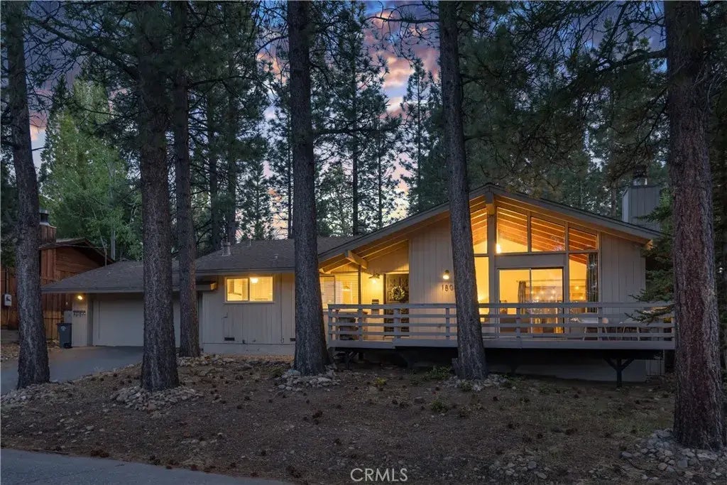 Escape to the enchanting atmosphere of Big Bear Lake with this stunning mid-century cabin, where rustic charm meets modern comfort. The moment you step inside, you'll be captivated by the home's WOW factorits rustic mid-century design beautifully complemented by high vaulted ceilings and expansive windows that flood the space with natural light, creating an airy and open ambiance. Ideally located in the sought-after Eagle Point neighborhood, this home offers the perfect balance of proximity and privacy. Just a 3-5 minute stroll from the lake's public access, you can enjoy lakeside activities without the hefty price tag of a lakefront property. Plus, the prime position allows you to enjoy a view of the lake right from your home. The interior features a magnificent, show-stopping fireplace, a rarity in today's homes, which adds warmth and character to the living space. Recent renovations include new hardwood floors, an updated kitchen, and modernized furnishings that respect the home's mid-century roots while offering contemporary conveniences. The expansive, level backyard is a blank canvas, inviting you to envision a terrace extension or outdoor oasis. With level access, a spacious two-car garage, and the allure of Big Bear snow-covered winters, this home lights up with beauty and charm. Priced competitively, this cabin is a rare find in Eagle Pointa perfect blend of location, style, and value. Embrace the opportunity to own a piece of Big Bear's serene lifestyle today.