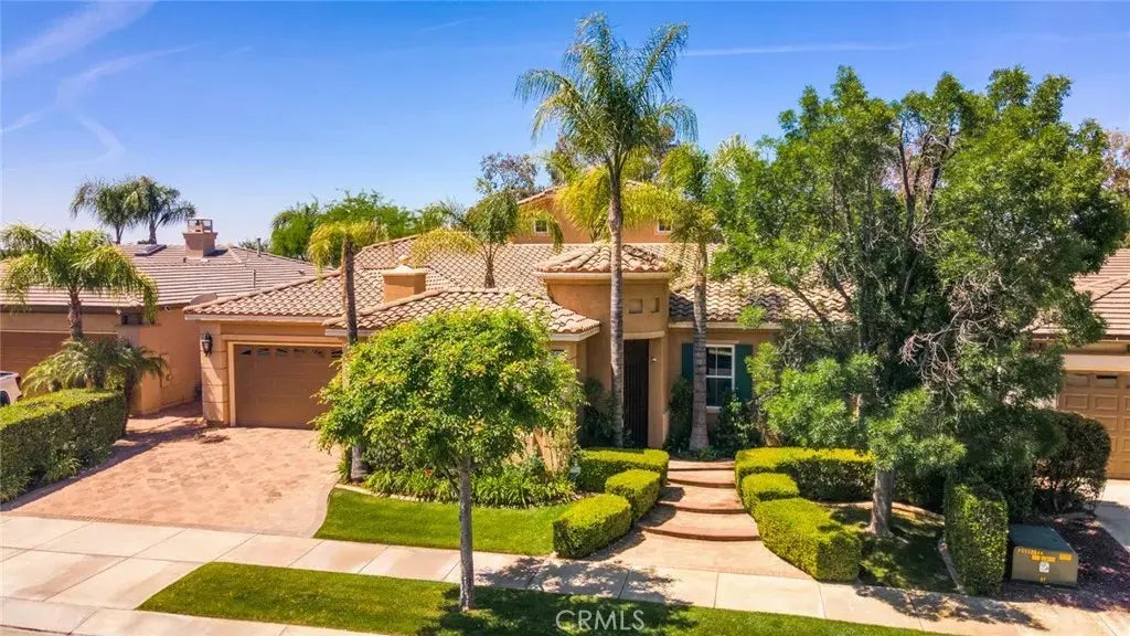 This 3690 square foot single story home with a loft, is located in the prestigious Tournament Hills Gated Community. Rare to find this much square footage on mostly one level. The driveway and all patios are finished in pavers and the lot boasts mature, professional landscaping. The home entrance is private with a turret, security entry, opening up to a tropical courtyard with a wall fountain. The double door entry has hidden screens that allow for the enjoyment of the gentle trickling sound. The interior living spaces are large with a two sided fireplace shared by the living and family rooms. The formal dining room and the office/den are separate and could be converted to two additional bedrooms. The center island kitchen with stainless steel appliances, double ovens and terrific counter space is open to the family room and boasts open ceiling beams, a large eating area and plenty of windows for natural light. The master suite is spacious with a spa style bath that enjoys a garden tub, separate shower, dual vanities and a large walk-in closet. Impressive interior features include tall ceilings and 8 foot doors throughout, Crown moldings and an abundance of tile and granite. A second floor is used as a game room with a balcony. The layout is flexible making it possible to have home offices, gym, hobbie rooms, two master suites and more. The garages are finished and both have openers. The rear yard enjoys a tropical, open feeling with the natural pavers and a fire pit. Beautiful views are enjoyed from this golf course location and the community walking trails that follow a s