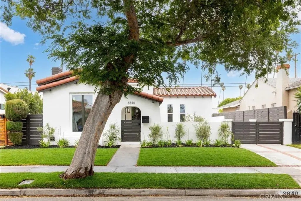 Situated on a quaint, tree-lined street this Charming remodeled Spanish style three-bedroom, two-bathroom home is located in the desirable Leimert Park neighborhood! This home features many upgrades including an open floor plan, a spacious gourmet kitchen with stainless steel appliances, quartz counters, breakfast bar and recessed lighting. The well-appointed kitchen integrates seamlessly with the dining room and light filled living room with vaulted beamed ceilings. The master bedroom has its own with en-suite bathroom which has been remodeled with charming finishes while the other two spacious bedrooms share a beautifully remodeled bathroom with one of the bedrooms having its own door that opens directly out to the backyard. Other features include but are not limited to, new floors, new Vinyl windows, central AC & Heat, new paint, large, landscaped backyard with trees. This house maintains its architectural integrity and is ready for its new owners to move right in. Property is located on a wide tree lined street with lush landscaping and great curb appeal and will sell quickly!