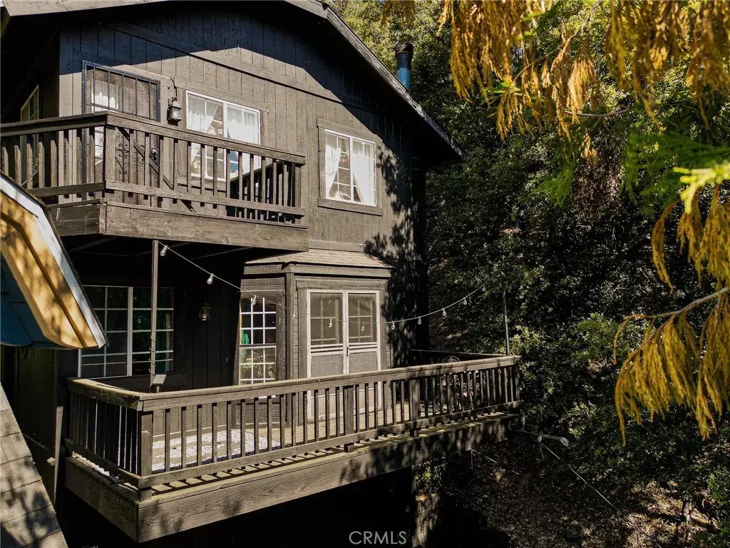 Discover The Hillside House, a one-of-a-kind residence that stands out with its bold black exterior and distinctive Victorian style elements. Nestled in Crestline, known for its scenic beauty and proximity to Lake Gregory, a popular spot for outdoor activities, such as fishing, boating, and hiking. This area is a great getaway from urban life, offering a mountainous environment and natural surroundings. Inside the house features intricately designed wood work, ornate fixtures and classic Victorian charm, all thoughtfully integrated to create an inviting and stylish atmosphere. This three-story home features a spacious two car attached garage on the lower floor. The main floor is designed with an open layout combining a cozy living room with a fireplace, kitchen and a half bathroom. On the top floor you'll find a luxurious primary bedroom complete with a classic clawfoot bathtub positioned elegantly within the bedroom itself, creating a unique and relaxing retreat. The top level also includes an additional three quarter bathroom, and a large deck that extends from the side of the house wrapping around to the back set of stairs that descends gracefully to the back yard. There you will find a jacuzzi and a turf grass area, all perfect for lounging, relaxing or evening star gazing. A harmonious blend of indoor and outdoor living, perfect for both relaxation and entertainment. Every corner of this home showcases a blend of elegance and contemporary flare. Perfect for those with a taste of the extraordinary, this captivating property is a true testament to individual style and so