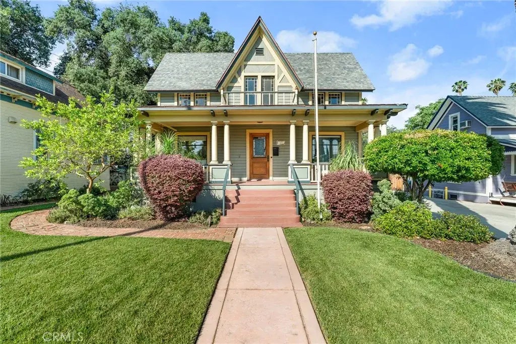 Quintessential Redlands Victorian Home. Step into the timeless charm of this beautiful Victorian built in 1887 and ideally located in the heart of Redlands. This spacious 1,811 sq ft home offers a perfect blend of historic character and thoughtful updates, all set on a generous 9,075 sq ft lot. From the classic front porch with a porch swing to the warm wood floors and abundant natural light, this home welcomes you in. The living and dining areas flow seamlessly, with the dining room featuring a custom-built-in library wall that adds both charm and function. The open kitchen has been updated with newer countertops, a designer tile backsplash, stainless steel appliances, and a butcher block islandperfect for everyday living or entertaining guests. On the main level, you'll find a flexible bonus room that can serve as the 4th bedroom, home office, or cozy den (note: no closet), along with a nearby bathroom. Upstairs, the home offers two secondary bedrooms plus a spacious primary suite featuring a walk-through dressing area, ensuite bathroom, and private upper-level deck with sweeping views of the Redlands Bowl and neighborhoodan ideal space to relax and unwind. Outdoor living shines here with a second covered porch at the back of the home, a large grassy flat yard perfect for gardening or gatherings, and a storage shed for tools and extras. Home also offers a 500+ bottle wine cellar!