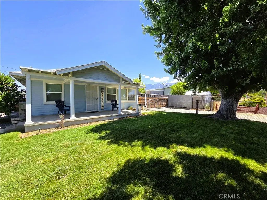 Welcome to this delightful single-story bungalow nestled on a humongous flat lot with stunning mountain views. This beautifully maintained property offers the perfect blend of privacy & convenience, featuring 2 driveways one on each side, leading to your massive backyard. All your hopes & dreams lay beyond the large industrial-chic electric gates. Need room to park all your RVs, your family's RVs & all your friend's RVs? This is the lot for you. RV HOOKUPS AND DUMP. Do you have boats, razors & toys galore? This is the lot for you. Do you like to fix & tinker all things mechanical? There is a covered open-air shop to tinker yourself into oblivion. There is a metal storage container as the back wall of the shop & two more blue sheds on the west side of the property for ample ample ample storage. Want to build a ADU or 2 or 3? This could be the lot for you (after verifying with the city of Yucaipa -of course.) This is the ideal lot where your visions of your perfect backyard start to bloom. Did I forget to mention???.... There is a stinking adorable cottage that comes on all this gorgeous flat dream land. 2.5 bedrooms (yes 1 bedroom is little bitty but does have a closet) & 1 full bathroom. This home is a tour of adorableness. You walk up to a cozy front porchperfect for morning coffee or evening relaxation. The front yard is fully fenced, with shade trees making it ideal for pets, play, or simply enjoying the fresh air. As you enter this delightful haven you are met by laminate wood floors & the amazing upgrade of double pane windows. The living room is spacious, and the kitc