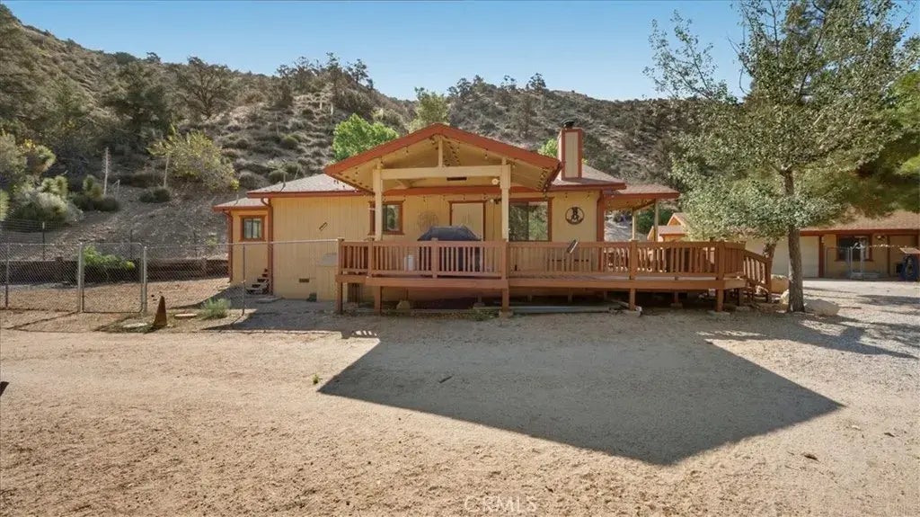 Mountain Serenity Meets Desert Charm on 5 Acres. Welcome to 7965 Sand Canyon Rd , a peaceful mountain retreat nestled in the foothills of Wrightwood, offering the perfect blend of rustic charm and modern comfort. This 2-bedroom, 2-bathroom home sits on an expansive 5-acre lot, fenced and cross-fenced with dog runs and privacy fencing, ideal for animals, security, and future expansion. Step inside to a warm and inviting interior featuring a cozy wood-burning stove, easy clean flooring, and large windows that frame the lush trees and canyon views. The kitchen boasts classic wood cabinetry and an open dining area that flows easily for everyday living or entertaining. Enjoy mornings on the covered deck, grill under the stars, or relax in the shade of the huge mature trees surrounding the home. The detached 2-car garage offers additional space for storage or workshop use. Outside, the landscape showcases a stunning mix of mountain and desert foliage, a seasonal creek running through the property, and a peaceful atmosphere thats second to none. A graded pad is already started, offering the perfect opportunity to build a guest house, shop, or barn. Whether you're looking for a full-time homestead or a weekend escape, this property delivers space, seclusion, and scenic beauty in spades. ?? Key Features: 2 bedrooms, 2 bathrooms Located in the highly desired Snowline School District 5 private acres with fencing, cross-fencing & privacy fencing Detached 2-car garage Wood-burning stove & multiple ceiling fans Large laundry room with extra storage Deck with overhead covering & built-in