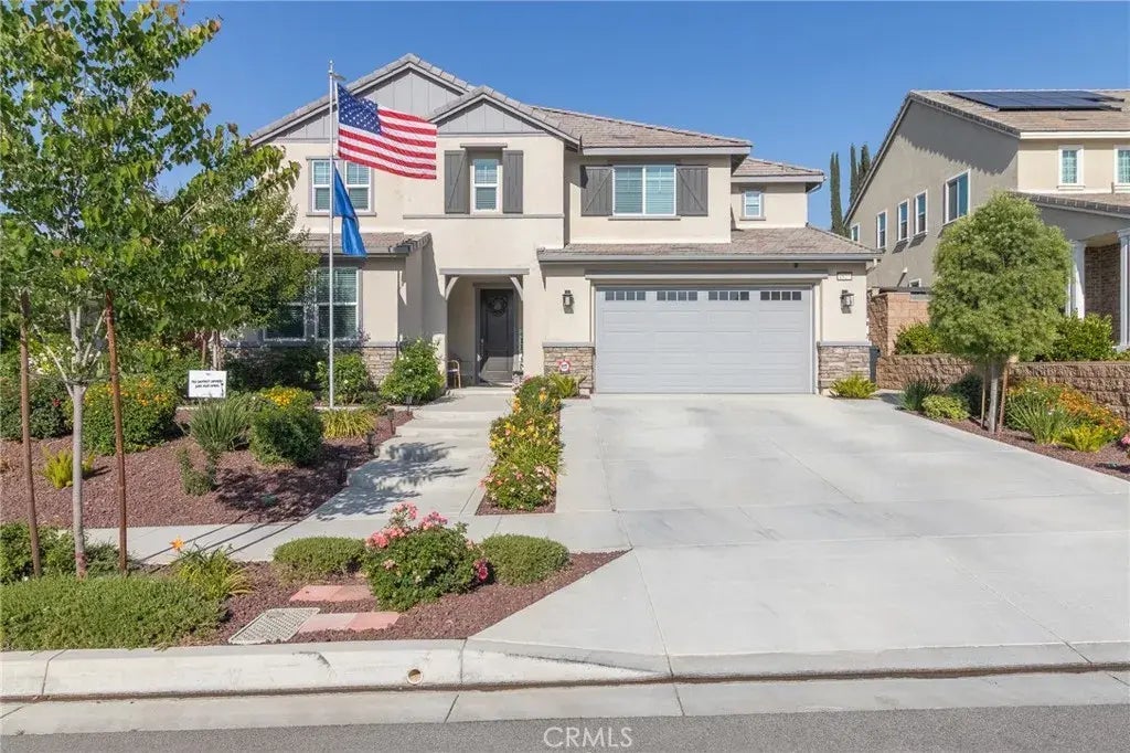 Want the perks of owning a new home but don't want to spend a fortune on landscaping and a pool? Come see this BEAUTIFULLY built home by Mastercraft Residential, with FULLY PAID OFF SOLAR included, NO HOA, and an amazing community feel! This home has 5 Bedrooms, 4 Bathrooms, 2,908 square feet, and an entertainers backyard complete with swimming pool, custom BBQ area, fire pit, and multiple seating areas. As you approach this home you'll notice the meticulously cared for front landscaping with flowers, bushes, and trees. As you come in the front door you'll be greeted by open spaces and luxury. The tile floors extend throughout the downstairs including the open concept living area as well as the bedroom and bathroom downstairs. The kitchen has a massive island perfect for Saturday morning breakfasts and gatherings that opens up to the dining and family room areas. As you move up the stairs you'll find the built in shelves perfect for your inner bookworm! You will also find 4 additional bedrooms, all with attached bathrooms. The Primary suite is expansive with a calming ensuite and a massive walk-in closet. You'll fall in love with this home and all it has to offer. Some additional features make this an efficient home with dual pane windows, tankless water heater, solar, drip system landscaping, etc. Set up a showing today!
