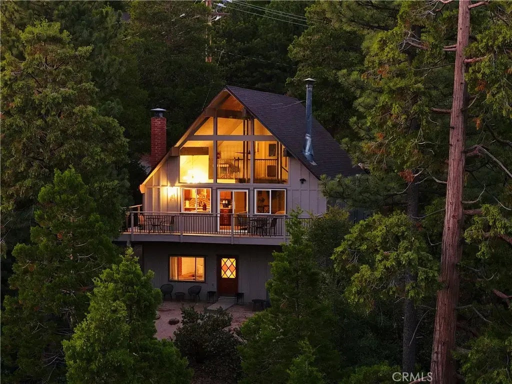 Discover your mountain escape in this inviting prow style retreat, where forest views and seclusion set the stage for a perfect getaway. Step inside to vaulted ceilings and an open layout that seamlessly blends the kitchen and living area, with a stunning wall of windows that frames the natural beauty of towering trees. The main level offers two comfortable bedrooms and a full bath, providing a cozy space for guests. Upstairs, the lofted primary suite offers privacy with an en-suite bath and walk-in closet, while still embracing the forest views from the main level. The lower level boasts a versatile entertainment room that doubles as an extra bedroom, with direct access to the backyard for relaxing outdoor moments. With level parking, just a few steps to the front door, and lake rights, this fully furnished home is ready to become your ideal mountain retreat or a sought-after rental. Only minutes from the golf course, country club, and Lake Arrowhead Village, this property offers the mountain lifestyle youve been dreaming of.