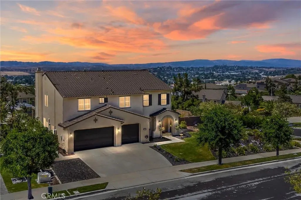 Set in the hills of Yucaipas desirable Chapman Heights community, this expansive 4-bedroom, 4-bathroom home offers over 4,300 square feet of thoughtfully designed living space on a prime corner lot with sweeping city light views and a sparkling pool. With a layout designed for both everyday function and entertaining, this home delivers space, flexibility, and comfort. At the entry, double glass doors open to a private office that can easily serve as a 5th bedroom. The adjacent formal living room features soaring two-story ceilings that enhance the openness of the space. Toward the rear of the home, a large great room connects the kitchen, family room, and breakfast area for easy flow. The chefs kitchen is equipped with a center island, granite counters, breakfast bar seating, walk-in pantry, and stainless steel appliances including a double wall oven, gas cooktop with vent hood, built-in microwave, and dishwasher. A breakfast nook with ceiling fan opens to the backyard, while a nearby formal dining room offers additional space for larger gatherings, also with direct access to the covered patio. The family room features a wood stove-style fireplace, recessed lighting, built-in surround sound, and automatic window shades. Travertine tile, hardwood flooring, and plantation shutters are found throughout the home. A spacious laundry room includes abundant cabinetry, a built-in sink, and direct outdoor access. A full bathroom is located downstairs. Upstairs, all four bedrooms surround a generous loft/sitting area. Two bedrooms share a Jack-and-Jill bath with dual sinks, while the