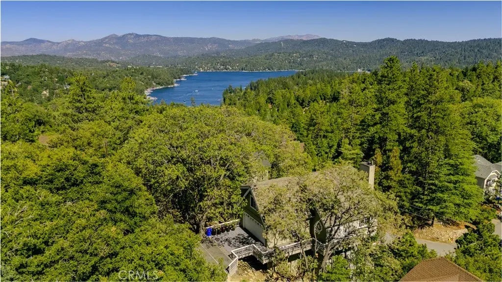Welcome to Mountain Vista Retreat, where spectacular panoramic lake and mountain views are the star of the show. Situated in the serene hills of Lake Arrowhead, this beautiful and meticulously renovated 4-bedroom, multi-level home offers unparalleled vistas from nearly every room, creating a serene backdrop for daily living or a memorable retreat. The home's expansive wraparound deck invites you to savor your morning coffee as the sun rises over the shimmering lake or gather with friends and family beneath the stars, taking in breathtaking sunsets and the fresh mountain air. This outdoor space seamlessly blends indoor-outdoor living, ideal for both relaxation and entertaining. Inside, you'll find a thoughtfully crafted interior featuring stylish, contemporary finishes, high ceilings, and large windows designed to capture natural light and maximize the stunning views. A cozy fireplace anchors the spacious living area, creating a warm and inviting atmosphere perfect for gathering on cooler evenings. The gourmet kitchen is fully upgraded with modern appliances, ample cabinetry, and beautiful countertops, making it a joy for any culinary enthusiast. Adjacent dining spaces provide intimate settings for family meals or entertaining guests, all while enjoying captivating lake views. The home features four comfortable bedrooms, offering privacy and relaxation for family and guests alike. The master suite is a true sanctuary, complete with its own stunning views, creating an ideal retreat at day's end. Additional bathrooms are tastefully updated with premium fixtures and finishes. L