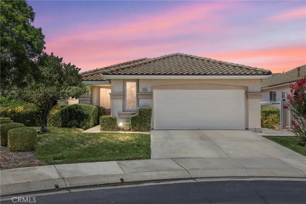 Popular Forsynthia model located on a quiet cul-de-sac in the desirable, guard-gated Sun Lakes Country Club. This meticulously maintained 2 bed + den, 2 bath home offers 1,683 sq. ft. of comfortable living space. The den is perfect for a Murphy bed or hide-a-bed, making it ideal for guests. Beautiful white tile flooring in main areas, with carpet in bedrooms, den, and living area. Kitchen and laundry room feature upgraded tile flooring; kitchen boasts granite countertops. Spacious great room with gas fireplace is open to the dining area and kitchen, offering abundant natural light. Ceiling fans in living room and primary bedroom. Sliding glass doors lead to a large covered patio and a beautifully landscaped side yard with apple, cherry, and apricot trees, plus vibrant rose bushes. Patio furniture included. Appliancesstove, refrigerator, microwave, washer, and dryerare included. Enjoy resort-style living with two 18-hole golf courses, 3 clubhouses, restaurants, indoor & outdoor pools, tennis, pickleball, fitness centers, and countless clubs and activities. Age-qualified 55+ community with 24-hour security. Incredible value under $500,000! IF YOU'RE LUCKY ENOUGH TO LIVE IN SUN LAKES - YOU'RE LUCKY ENOUGH!!!