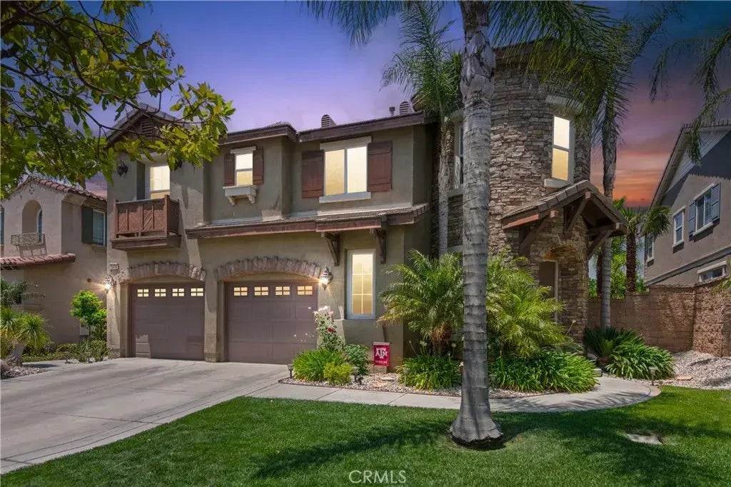 Elegant North Fontana 4 bd /3 ba home located in the gated Shady Trails community is ready for its new owners! Featuring wonderful curb appeal w/ stacked stone accents, tropical landscaping, & castle-like turret entry. The interior has 4,108 SF of living space w/ 3 levels including 2 Multi-Functional Bonus Rooms & an Office/Den. Features include: NEWER PAINT, NEWER HVAC, 3 A/C UNITS, plantation shutters, custom baseboards, recessed lighting throughout, ,an open, spacious floor plan, & gorgeous details throughout the home. The Rotunda Entry opens to the Formal Living Room just off of the Formal Dining Room w/ tray ceiling & custom tile accent wall. The Kitchen features stainless steel appliances, granite counters, tons of cabinet space, tile backsplash, a center island, & walk-in pantry. The Great Room features a Surround Sound speaker system, a custom brick accent wall, & fireplace. The Office/Den, a Full-Size Bathroom, & the Laundry Room complete the 1st floor. The 2nd floor offers a large Multi-Functional Loft area - great for a media room or lounge, & there is another turret area great for a sitting area, play area, book nook or study. The 2nd floor also has 4 Bedrooms including the Primary Suite w / tray ceiling, a walk-in closet & a private ensuite w/ barn-door entry, dual sinks, jacuzzi tub, & separate shower. The 3 Secondary Bedrooms also share a full-size hall Bathroom w/ dual sink vanity. The 3rd Floor is another Multifunctional Bonus Space w/ vaulted ceilings - great for a game room or a huge Bonus Bedroom. This home has attached, 2-Car Garage w/ 4 ft extension &