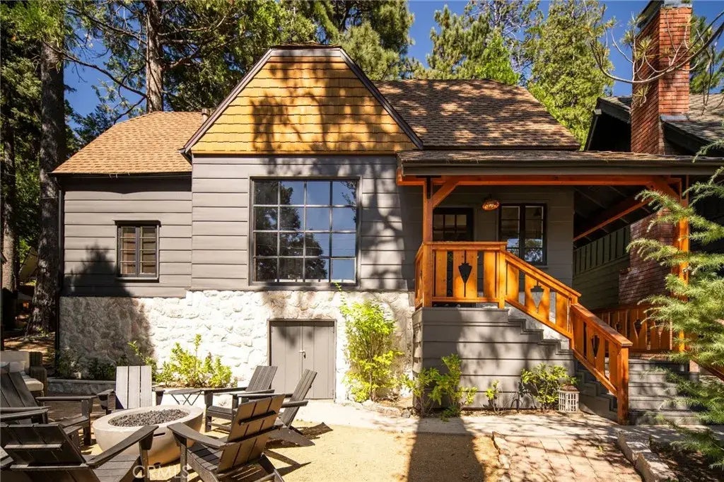 Timeless charm meets modern design in this beautifully remodeled mountain retreat, ideally situated just across the street from the lake in Lake Arrowheads sought-after Palisades neighborhood. Step inside to a warm and inviting main living space that blends vintage character with curated style. Floor-to-ceiling windows bring in natural light and frame views of the trees, while original wood-beamed ceilings and knotty pine paneling add cozy, mountain-lodge character. Two distinct seating areas provide room to relax or entertain, all anchored by a stunning original stone fireplace. The kitchen is both functional and full of personality, featuring playful two-tone green cabinetry, classic finishes, and a built-in dining nook with a farmhouse table. Indoor-outdoor access makes for effortless entertaining and easy flow between spacesperfect for life in the mountains. Two beautifully remodeled bathrooms and cheerful, light-filled bedrooms offer comfort and charm in equal measure, creating a welcoming retreat for family, friends, or guests. Step outside to an expansive decomposed granite and stone patio, thoughtfully designed for outdoor living and entertaining. Multiple zones provide room to dine, lounge, and playfrom casual meals under the trees to evenings around the fire pit or games in the open recreation space. A rare two-car garage adds valuable convenience.Whether you're looking for a full-time residence, a design-forward getaway, or a proven investment, 117 John Muir Road checks every box. The home also operates as a luxury short-term rental, offering strong income potent