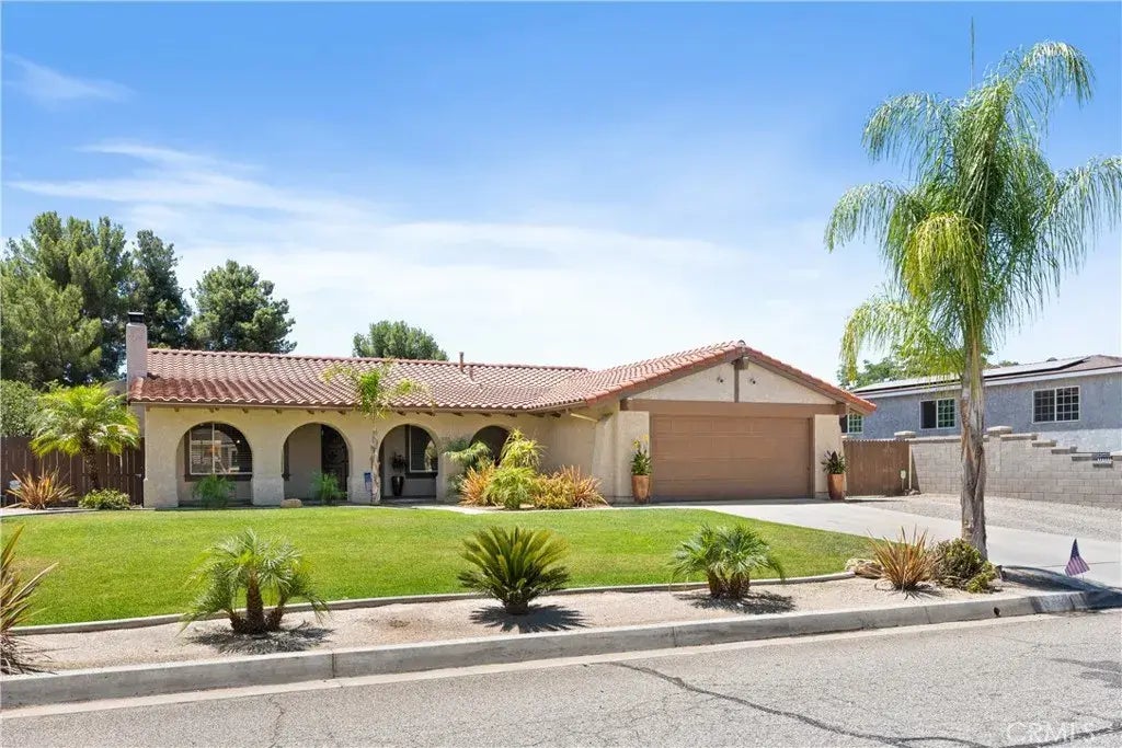 Welcome home to Camelot Drive...checkout the large lot and workshop! Loaded with upgrades, pristine, open concept floor plan, on over an acre, and absolutely stunning! This single story home features: Almost 2000 sf of living space; 4 bedrooms (1 currently used as an office) and 2 beautifully remodeled bathrooms; Luxury vinyl flooring throughout, large baseboards, and custom neutral paint throughout; Large living room that has recessed lighting, oversized designer ceiling fan, fireplace with built-in surround, and large windows; Kitchen with expansive island, gorgeous upgraded cabinetry with brushed gold hardware, fabulous quartz counters, stone backsplash, stainless steel appliances, large stainless steel sink, and recessed lighting; Flowing from the great room is also the dining room with room for a large table and views out to the backyard and patio from the sliding glass door; Down the hallway are the 2 guest bedrooms, laundry room, guest bathroom, and primary suite; The primary suite features a walk-in closet, custom electric fireplace built-in, oversized designer ceiling fan, and sliding barn door that leads into the primary bathroom; The primary bathroom has dual sinks, large custom walk-in shower, and granite counters. Head outside to find absolute paradise with the expansive allumiwood patio cover, expanding approximately 800 sf across the back of the home, offering plenty of entertaining space! The backyard also features: built-in BBQ island with sink, vinyl fencing surrounding grass area, fenced in dog run down the East side of the home, as well as mature landsc