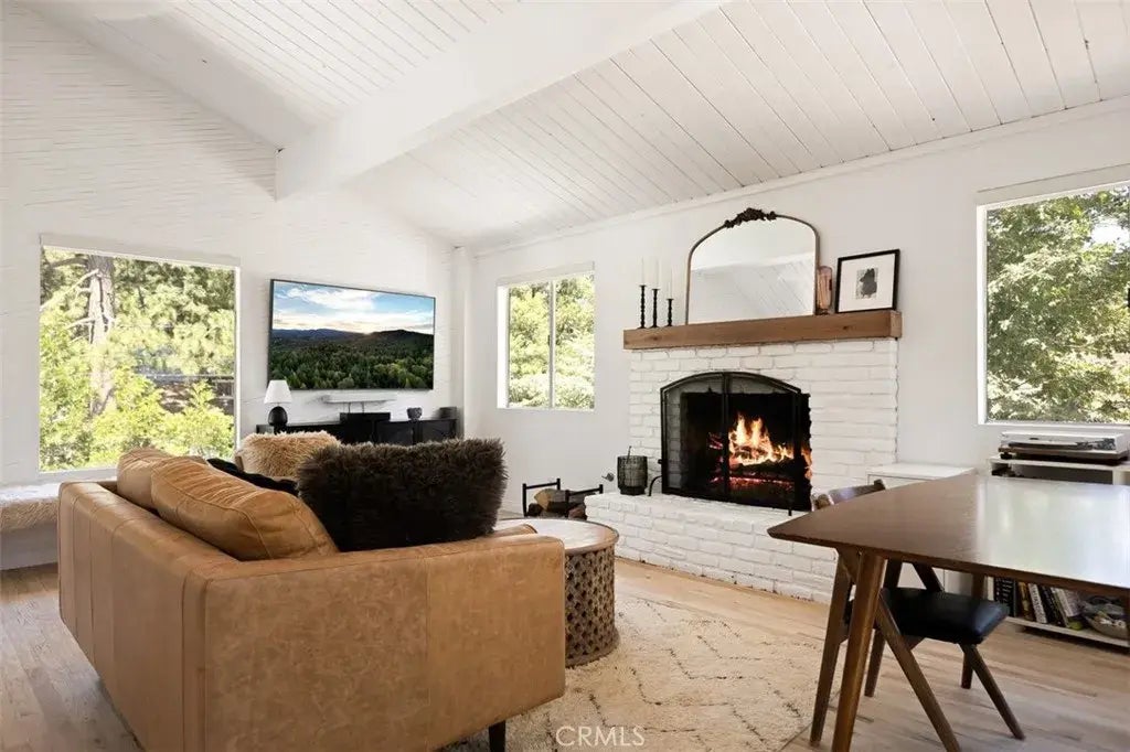 PRICE IMPROVEMENT!! Tucked in a quiet Twin Peaks neighborhood, this updated 2-bedroom, 1-bath mountain cottage blends modern comfort with vintage charm on a generous 9,000 sq ft mostly flat lotcomplete with rare off-street parking for up to five cars. The freshly painted exterior and interior in soft cottage white set the tone, while a white wood ceiling adds warmth and character to the open main living space. Enjoy a beautifully remodeled kitchen with vintage-style appliances, refinished original wood flooring upstairs, new flooring downstairs, and a cozy wood-burning fireplace ready for crisp evenings. The upgraded bathroom includes new plumbing and electrical with new artisan tile in the shower. The rest of the house has additional upgrades which include a new electrical panel, remote-controlled blinds, ceiling fans, and a mini split A/C system for year-round comfort. Step outside to a brand-new balcony off the bedroom, a fully fenced backyard, a spacious storage shed, and room to expandideal for guests or potential rental income. Located just minutes from both Lake Arrowhead and Lake Gregory with fast access to Hwy 18 (a priority snow-plow route), this turnkey home is perfect for weekend getaways, remote work escapes, or full-time mountain living. Stylish, cozy, and full of opportunitythis one wont last.