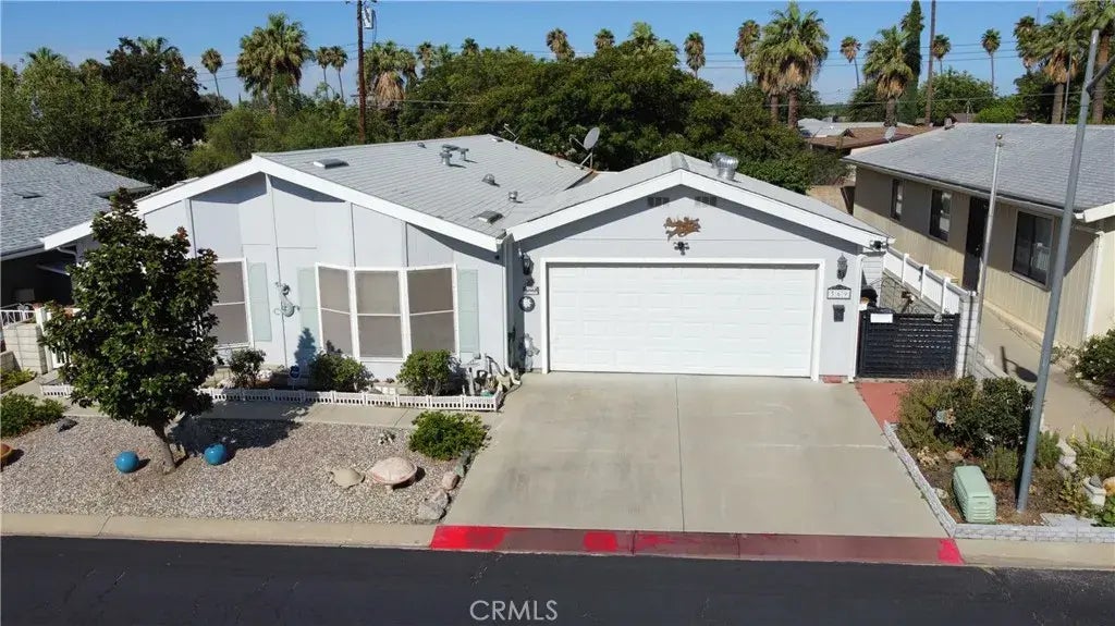 Spacious well maintained Manufactured Home in very desirable 55+ Mountain springs park with beautiful mountain views. This home features three large bedrooms and two large baths, vaulted ceilings, Walk in closet, updated flooring, updated electric fireplace, indoor laundry, chefs kitchen with recessed lighting, and custom backsplash. This home has a very spacious two car attached garage with concreate driveway. The back yard is landscaped with various fruit trees and plenty of space. Stepping out towards the back yard you will find an oversized bonus room with hot tub. This home is close to everything, including shopping, dining, and medical buildings. Commuter friendly and priced to sell..