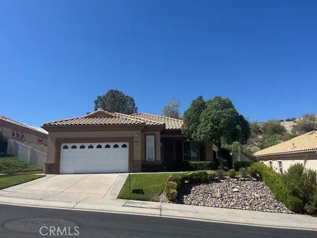 Beautifully Upgraded "Trillion" in Sun Lakes Country Club, a 55+ Gated Community. Sitting high above the community with Views of the City and San Gorgonio Mountains with nobody behind you. Popular floorplan with 2 Bedrooms Plus a Den/Office and 2 Bathrooms, 10 Foot Ceilings, Plantation Shutters thru-out, Oversized Doors, Bull-Nosed Corners and Recessed Lighting.. Great Room has Wood Flooring and Gas Burning Fireplace with Electric Starter, and Walls of Glass with Slider leading to the Back Yard. Kitchen is Open to the Great Room and has Gas Range, Dishwasher and Built-in Microwave, Pantry and Breakfast Bar. New Carpet in Guest Bedroom and Den/Office. Primary Bedroom has Huge Walk-in Closet. Primary Bathroom has Double Sinks, Walk-in Jetted Tub and Separate Shower. Guest Bedroom has Walk-in Closet and Private Entry to Guest Bath. Interior Individual Laundry Room has Sink and Washer and Dryer are included. Garage with Epoxy Floors is Oversized with Niche for a Golf Cart and Built-in Cabinets. Back Yard has New Faux Grass and Fruit Trees with Built-in Covered Patio. Sun Lakes Country Club is an Active 55+ 24 hour Guard Gated Community with so much to offer.....Two 18-hole Golf Courses (Championship and Executive), Driving Range, Putting Greens, Pickleball Courts, Tennis Courts, Bocce, Table Tennis, 3 Clubhouses, 3 Pools/Spas, 3 Gyms, 2 Restaurants, Full Bar with Newly Expanded and Remodeled Lounge, Veranda, Craft Room w/ Kiln, Ball Room, Libraries and over 70 Clubs to join for those interested. Living here is truly like living in a Resort!!!