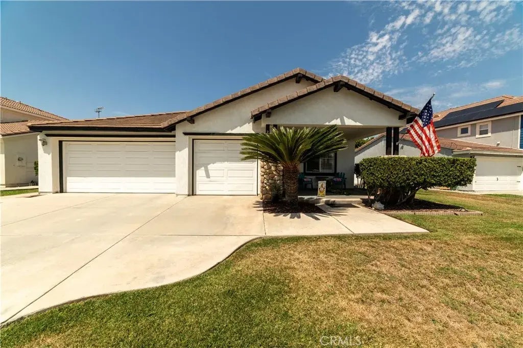 Beautiful Single Story with Pride of Ownership! Recently painted, this home has both front and rear patios. This gorgeous 3 bedroom plus bonus room 2 bath home features a formal living dining with pergo flooring and a recessed wall for storage or a tv, your choice! Walking through to the wide open renovated kitchen with mobile island, the kitchen has custom tile both on the floor and as a backsplash. Open to the family room this is truly a great room with two ceiling fans and a custom light feature. Three cutouts in the drywall perfectly showcase whatever you want to and custom cabinetry in the family room allow you to store all your stuff! Go down the hallway with a built in desk and more cabinetry to bedroom one, which currently has a large opening to the family room - good for using as a den, craft room or bedroom! Both the secondary bathroom and primary bathroom have been upgraded, with custom basins. The primary bedroom has pergo flooring, a ceiling fan, plantation shutters and a slider to the backyard. The backyard has block walls along the back, and new vinyl fencing in between the homes as well as a bbq island on its on porch. Across the rear of the home is an alumnawood patio and concrete pad to set up a nice entertaining area. Property also has a recently installed water softener and water filtration system. Solar power will need to be assumed, but the seller only pays $85/month and has not had to pay more to Edison!