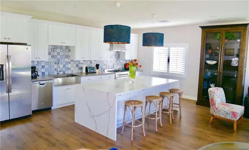 A beautifully remodeled turnkey three bedroom three bath single story home in Garden Grove. Quartz countertop in kitchen with large waterfall island perfect for entertaining family and friends, stainless steel appliances, farmhouse stainless steel sink, bathrooms have marble tiled shower with frameless glass enclosure, marble countertops, marble floors and laminated wood floors throughout. Side of home has cemented and gated area, approximately 12 ft wide, which can accommodate RV and/or boat depending on size of your recreational vehicle. Large patio area and backyard. Great location in a mature suburban neighborhood close to shopping, restaurants, and Korean/Vietnamese Towns.