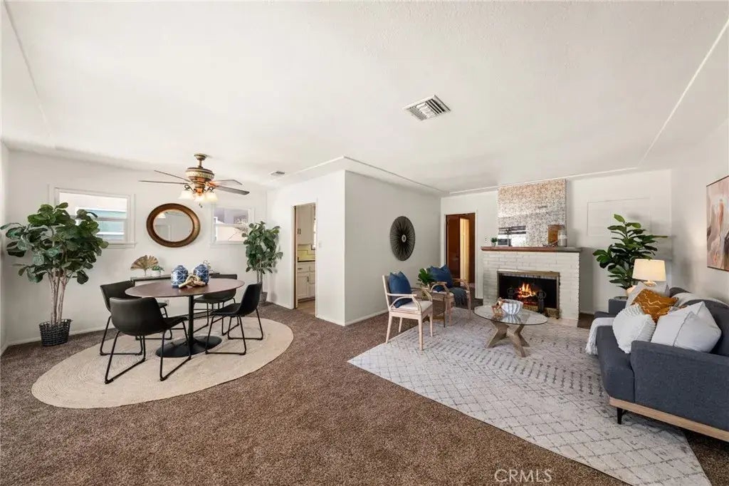 Single story move in ready home with no HOA on a quiet street with a detached garage and private yard! Located just a stones throw from Colton Middle School and conveniently near Rancho Ave, this classic 3/2 ranch offers both a great location for living and commuting. Enter the home into a spacious formal living room with plenty of natural light. there is new carpet and paint throughout. A vintage kitchen wraps through to the family room and dining, which shares a brick fireplace with the formal living room. There is a spacious primary bedroom in the back of the home, with it's own bathroom and adjacent indoor laundry. This room also has excellent closet space, and a built in desk. The front of the home has two additional bedrooms and a full bathroom with lots of 50s charm! A covered back patio provides plentiful shade and direct access to the detached one car garage, which also features plenty of shelving.