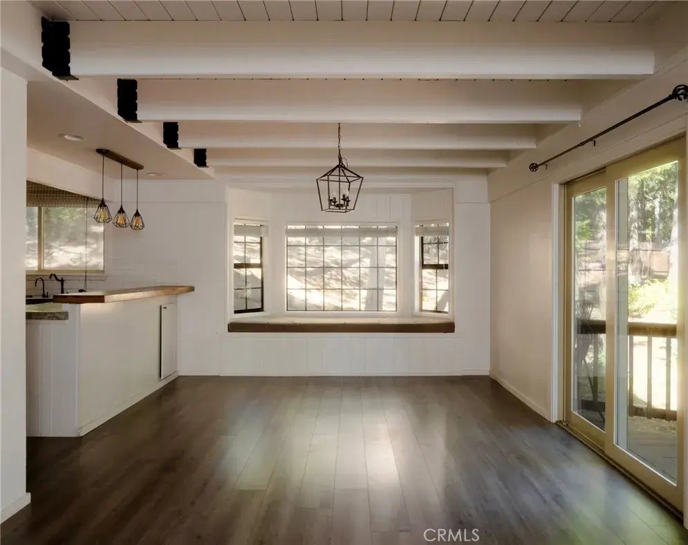 Welcome to your Twin Peaks mountain retreat! Set on a spacious corner lot with neighbors well away, this home offers both privacy and room to spread out. With nearly 2,000 sq ft of living space, theres plenty of room for family, guests, and entertaining. Inside, youll find 5 bedrooms and 3 beautifully remodeled bathrooms, including a main-level master en suite. Two bedrooms on the main floor make the layout especially convenient. One bath features a stunning oversized tiled shower with dual shower heads for a spa-like touch. The home offers two expansive living areas, a large dining area (with built-in window seat), and a remodeled kitchen with sleek concrete countertops and stainless steel appliances. Exposed beam ceilings, engineered wood floors, rustic stone columns, and a cozy stone fireplace create a warm yet stylish mountain aesthetic. Natural light pours through windows in nearly every room, making the home light and welcoming. Parking is no issue here, with two driveways, a two-car garage (featuring a workbench and built-in cabinets), and optional RV parking. The outdoor spaces are equally appealingstep up through hardscaped walkways accented with large boulders and enjoy a setting thats both landscaped and low-maintenance. All this in a desirable Twin Peaks neighborhood with wide, county-maintained roadsjust 10 minutes to both Lake Arrowhead and Lake Gregory for year-round recreation.