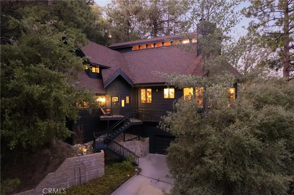 This is 1148 Nadelhorn, a striking architectural home with expansive lake and ridge line views, located in Lake Arrowhead California. As you approach the property, the bold, contemporary lines of the home captivate the eye, seamlessly integrating with the natural surroundings. The multi-level floor plan adds an element of surprise, with every turn revealing unexpected spaces and incredible views. Enter to find a welcoming entryway that opens to the living room with soaring vaulted ceilings and a wall of glass that overlooks the lake and mountain ridges in the distance. The living room features a unique rotunda conversation room, wrapped in windows, with a fireplace as focal point and a slider that opens onto the inviting deck - perfect for entertaining and enjoying the beautiful mountain vistas. The main living level also includes the kitchen with open concept dining space, and the primary bedroom with ensuite bathroom. Upstairs you'll find a spacious living room loft with stunning views, a full bathroom and 3 additional bedrooms. The home has an oversized, attached garage with EV charger, air conditioning and lake rights to the beautiful arrowhead lake for boating, fishing, and leisure activities, allowing you to embrace the full Lake Arrowhead lifestyle! This property is a bold expression of avant-garde design, with daring angles and a fluid open floor plan that redefines modern mountain living.