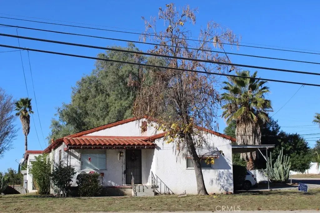 CORNER HOME ON ABOVE AVERAGE SIZE LOT (14,000), SPANISH BUNGALOW WITH STUDIO HAS BEEN IN THE SAME FAMILY FOR 2 GENERATIONS. NEEDS UPDATING AND UPKEEP. PROPERTY WAS A 3 BEDROOM, NOW A 2 BEDROOM, MASTER HAS 2 CLOSETS ONE IS A WALK IN. FAMILY ROOM OFF KITCHEN, FRONT PORCH, FENCED LOT! GARAGE WAS CONVERTED INTO A STUDIO WITH KITCHEN AREA AND LARGE BATHROOM, STUDIO NEEDS WORK. PROPERTY HAS LEASED SOLAR PANELS. LAUNDRY WITH UTILITY SINK LOCATED IN SHED, COVERED PATIO, FENCED YARD. LARGE CORNER LOT OFFERS LOTS OF POSSIBILITIES. CLOSE TO 10 FREEWAY AND SCHOOLS. LIVING ROOM, FRONT BEDROOM AND DINNING AREA HAVE SHUTTERS. MOUNTAIN VIEW FROM FRONT WINDOWS.