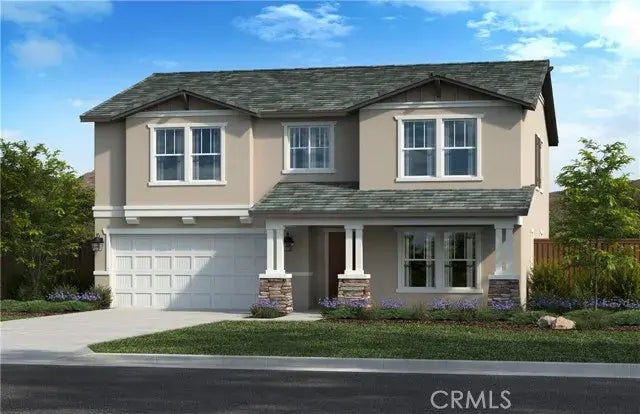 This elegant 2-story home boasts ample space and convenience. With a bedroom and full bath downstairs, and 4 additional bedrooms plus a loft upstairs, there's plenty of room for everyone. The kitchen features sleek white cabinets, quartz countertops, and top-of-the-line Whirlpool stainless steel appliances. Just minutes from the freeway and local shopping, this home provides both comfort and accessibility. Photo is a rendering of the model. Buyer can either lease or purchase the Solar.