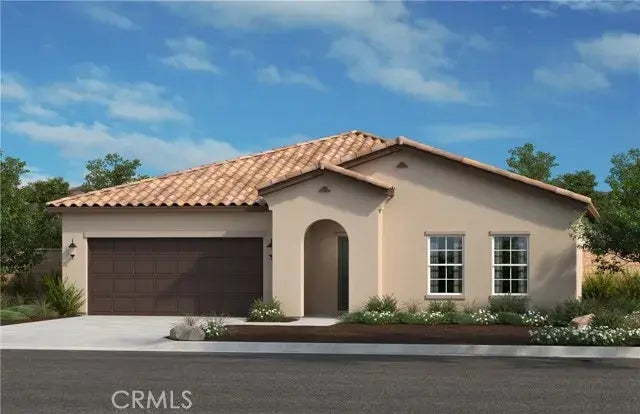 Charming single story, Spanish style, all electric 4 bedroom home. Home features 9ft ceilings with ample hallways, impressive kitchen includes Frost white Quartz kitchen countertops, beautiful Maple wood w/Mocha stain color cabinets, stainless whirpool microwave, dishwasher and oven. Primary bathroom includes full shower w/ linen closet, large walk in closet. Flooring includes luxury vinyl flooring and carpet in the bedrooms. Solar option to purchase. Energy star qualified home to help save on your energy bill. Photo is rendering of the model. Buyer can either lease or purchase the solar.